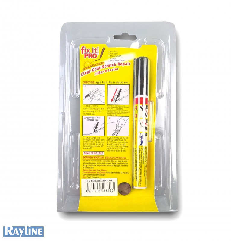 Kleine Kratzer und Macken schnell & professionell beseitigen! Mit dem Fix it Pro Lack-Stift kein Problem! Entfernt kleine Kratzer und beschädigungen in der Klarlackschicht. Schützt vor Korrosion/Rost durch Versiegelung der Kratzer. Für alle Lackfarben geeignet, da farblos