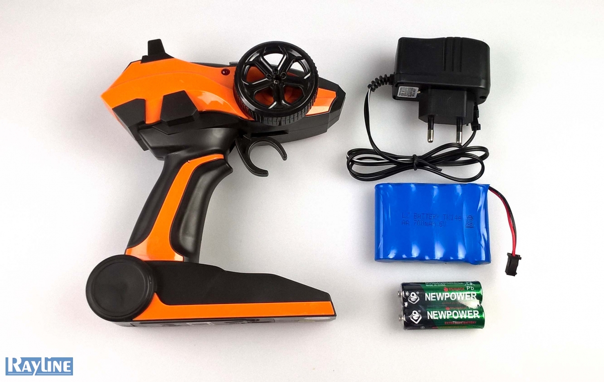 1x X-Knight, 1x Fernbedienung, 1x 6V 700mAh Battery Pack, 2x AA Batterien, 1x Ladegerät, 1x Anleitung
