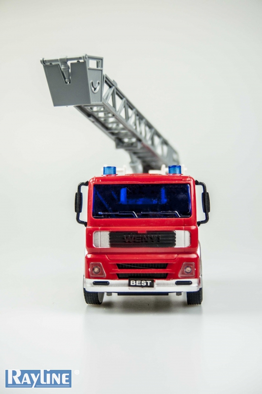 Das RC Feuerwehrauto hat eine Drehleiter und Scheinwerfer. Das Auto wird mit einer 4 Kanal 27 MHz Funkfernbedienung gesteuert. Der Maßstab beträgt 1:20. Kleines Auto, großer Spaß!