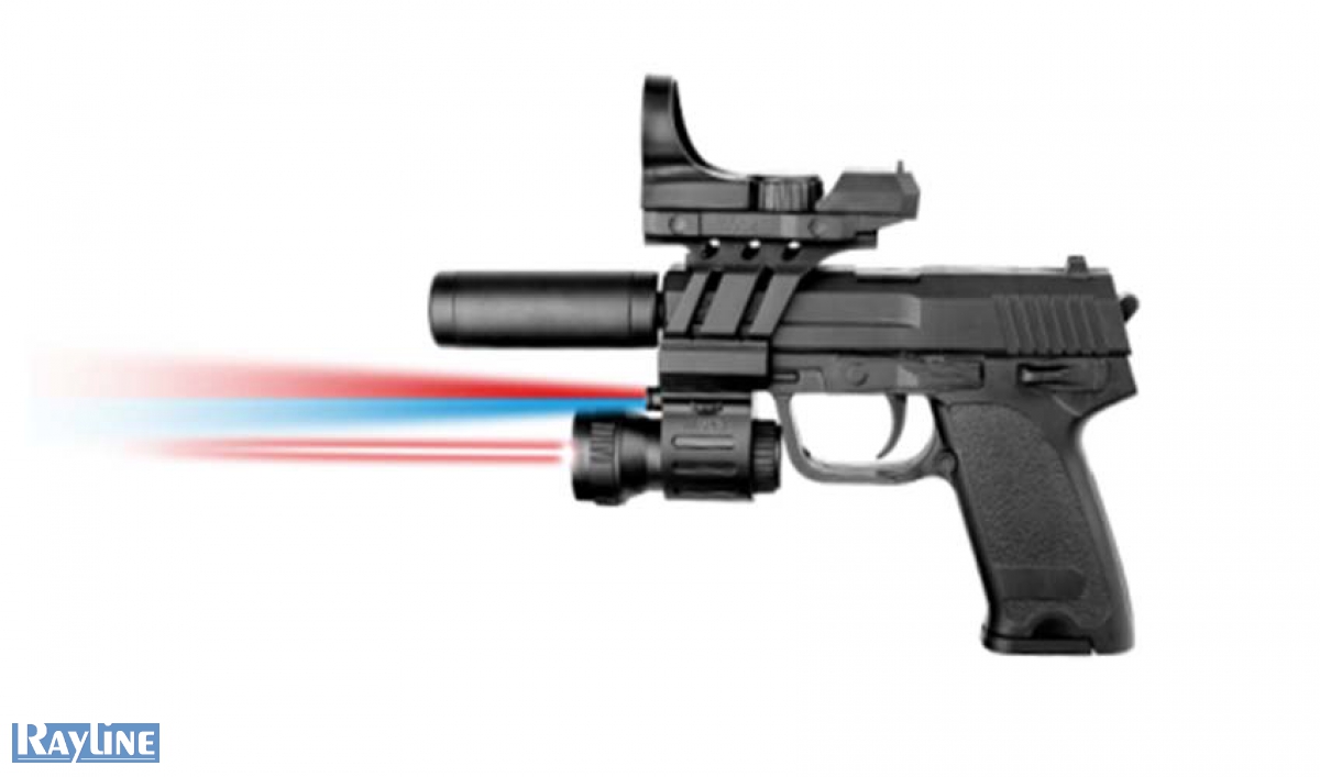Federdruck Softair Pistole - aus Plastik - Schwarz - mit Licht - 043B