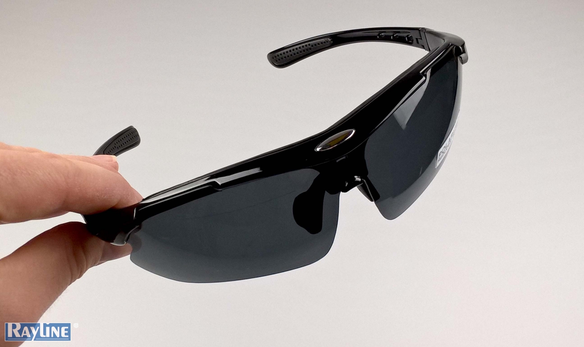 Das Gestell der Brille ist Schwarz. Sie bringt insgesamt 5 Wechsel-Gläser mit in Gelb, Blau, Braun, Schwarz und klar. Dazu ein Brillenband und ein Gummi Riemen um von Bügeln auf festen Sitz zu wechseln.