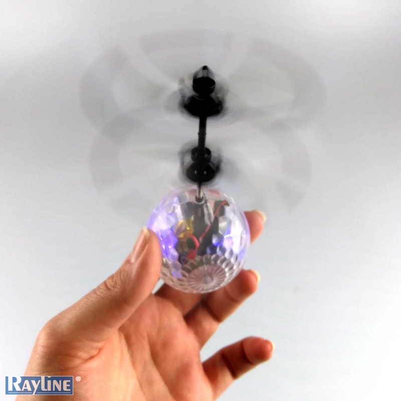 Ähnlich einem Spielzeug Hubschrauber. Sobald die den Ball anschalten, beginnen die bunten LEDs zu leuchten und die Rotoren starten.
