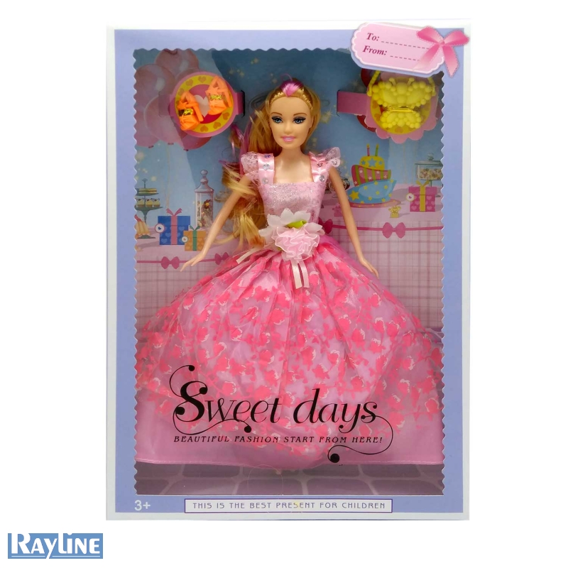 Diese Puppe kommt mit einem wunderschönen Ballkleid, einer Handtasche und High-Heels.