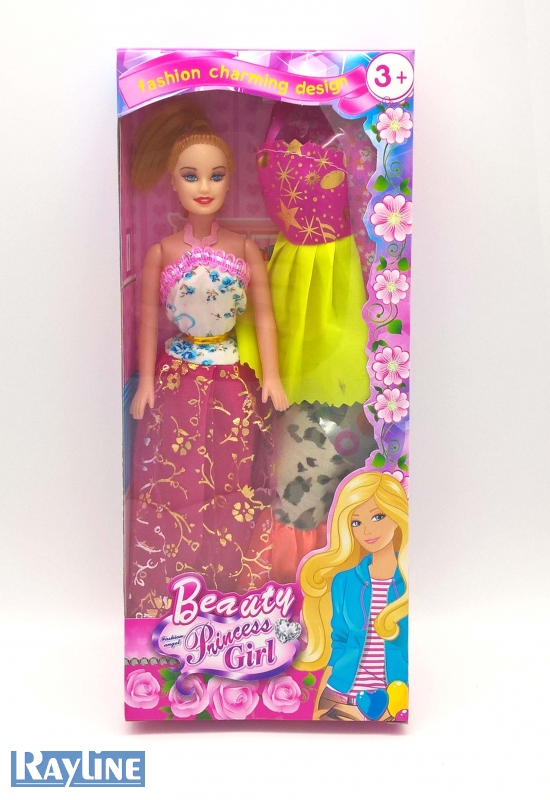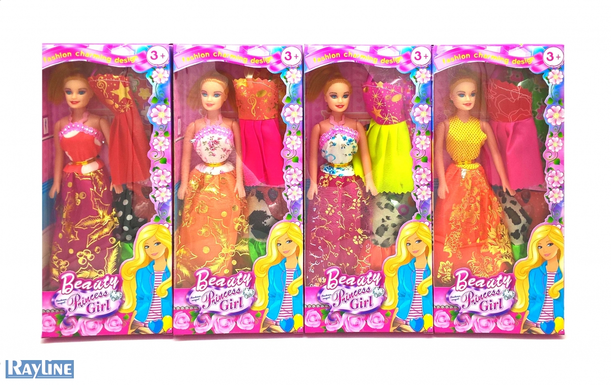 Diese Puppe bringt 5 Kleider mit.