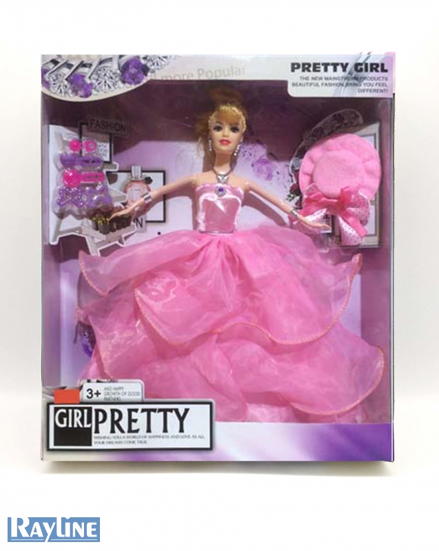 Diese Puppe kommt mit einem wunderschönen Ballkleid, einem Hut und kleinen Haarklammern.