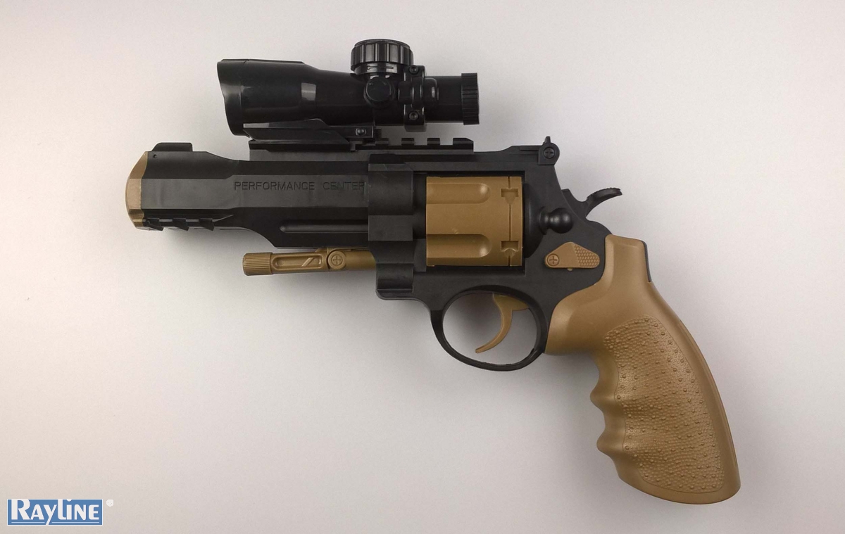 Mit dieser Pistole, lassen sich die mitgelieferten Schaumstoff-Pfeile verschießen.
